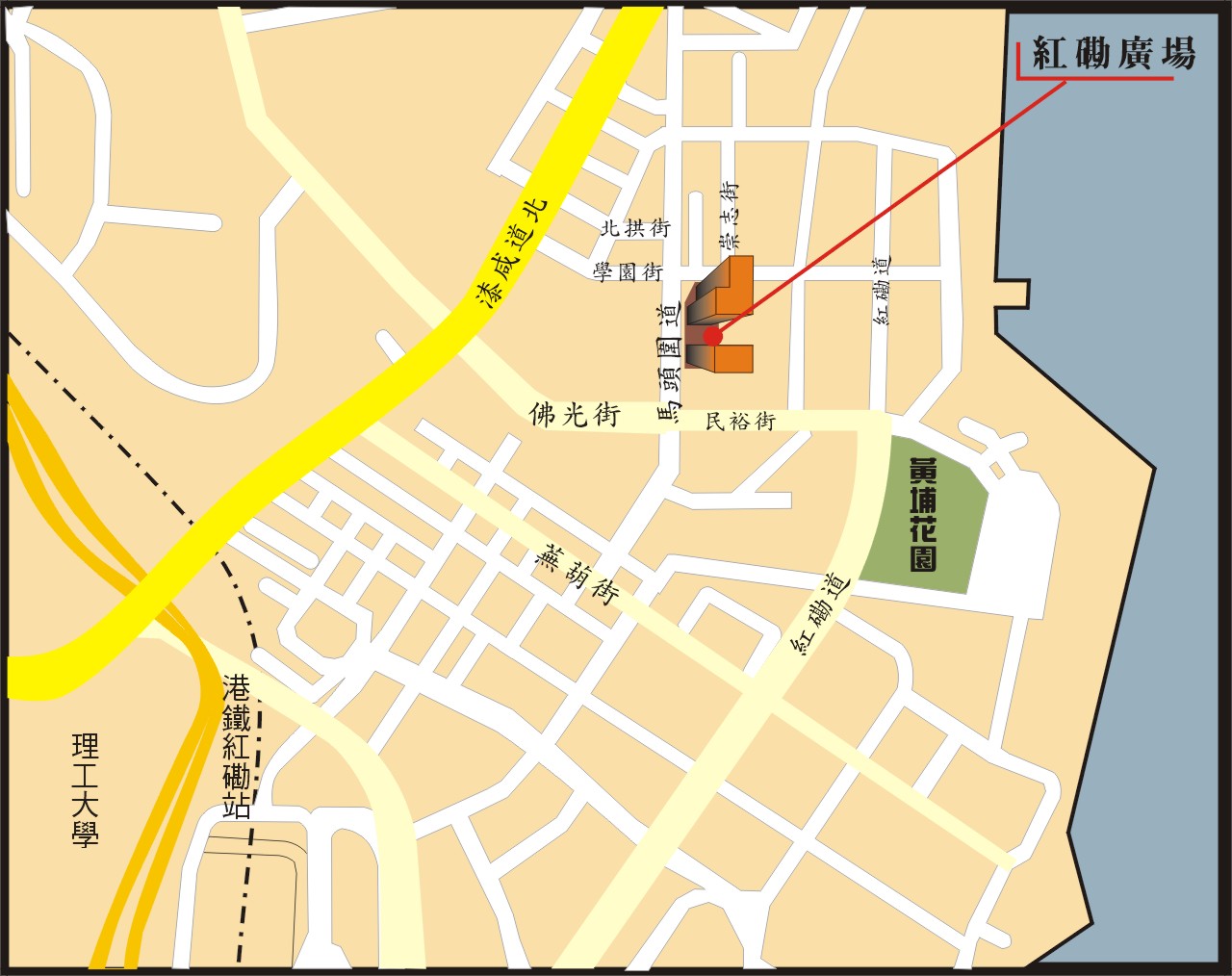 點擊上圖示檢視放大位置地圖,如欲查看紅磡廣場所在地區詳細地圖,